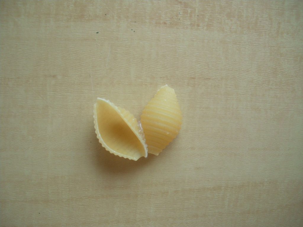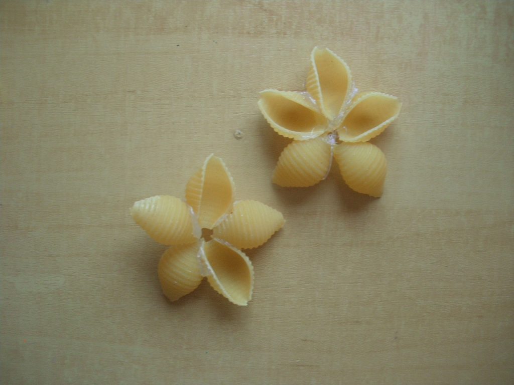 1. Разпилейте част от макароните и започнете да напасвате едно към друго парченцата. Подреждайте ги по 5 във формата на звездичка. Някой може да са с обратната страна.
