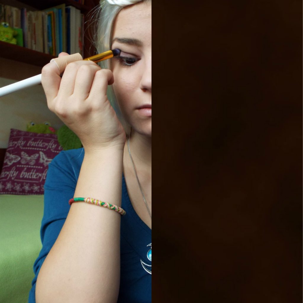 6. For the eye shadows use cold shades. I think the mauve colour is the best choice. The shade in my pallette was just a little bit more grayer. I made the colour more intensive to look better in photos. The decision of how dark your eye make-up would be depends all of you and your skin tone.
