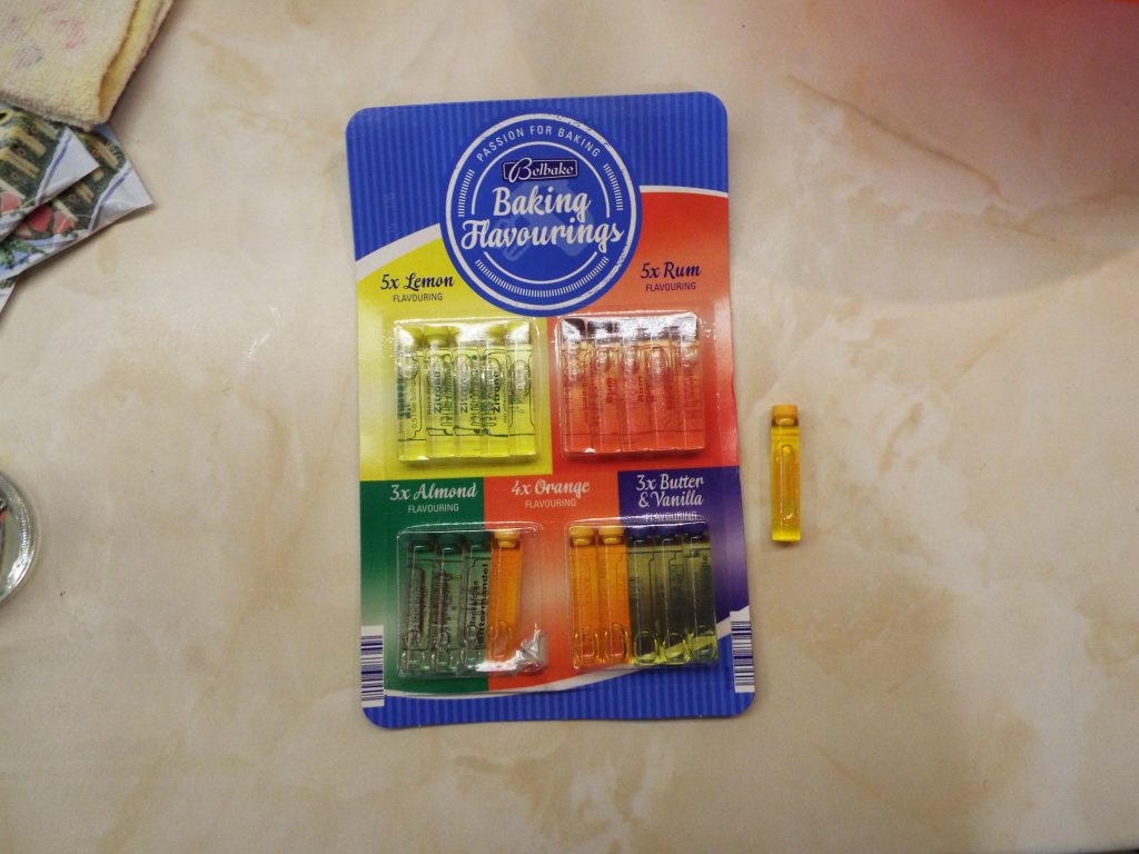 4. Choose a baking flavouring. I recommend to be lemon or orange, but you can choose whatever you want. I chose an orange. Put the half of one mini bottle in the bowl with the champagne.