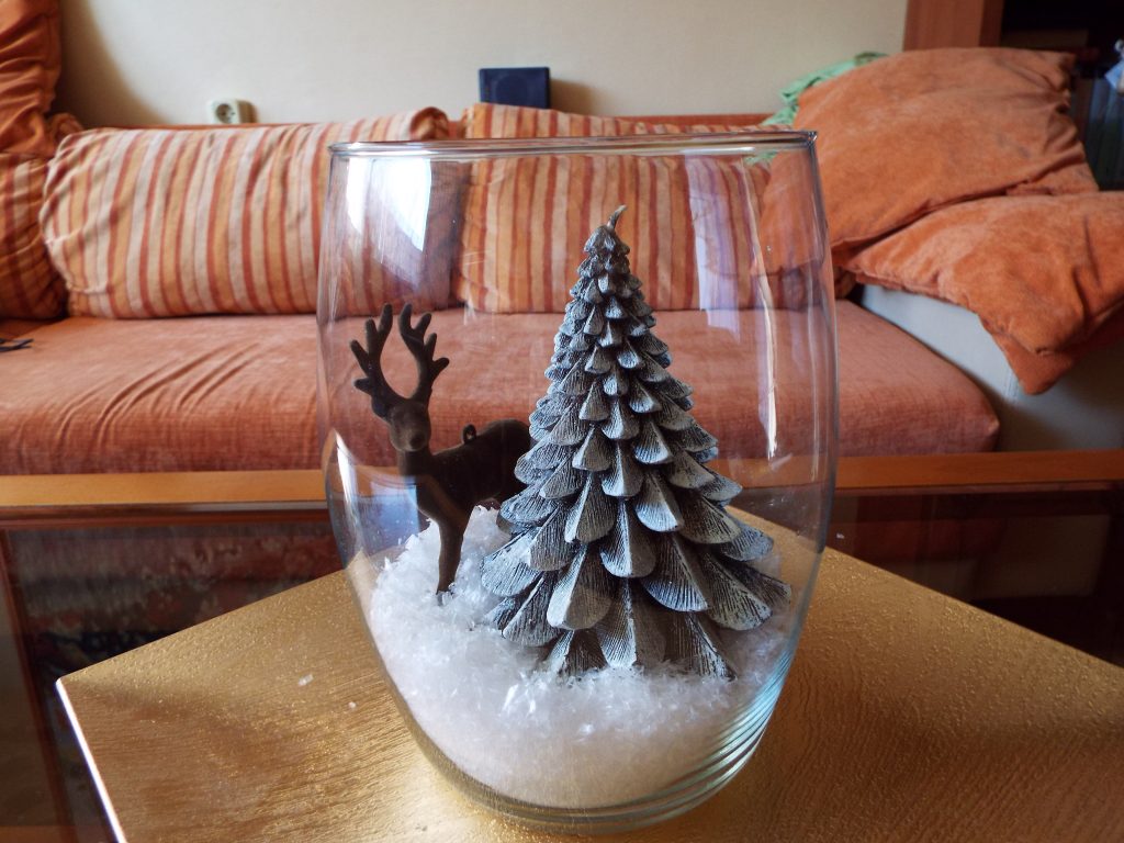 5. Then arrange your middle-size ornaments. In my case it`s a sweet deer.