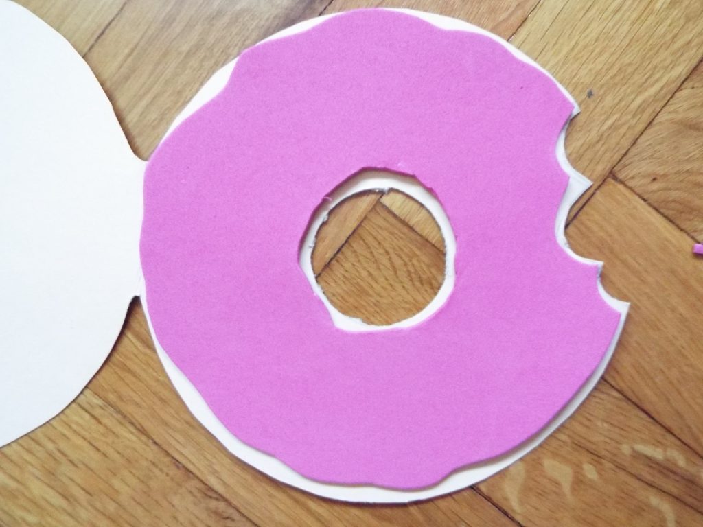 4. Outline the donut shape on other paper. This will be your glaze. I made mine from hot pink foam paper. And cut it out.